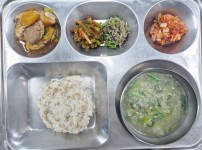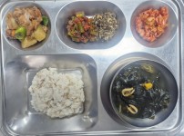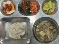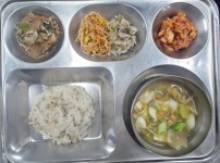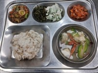 점심식단밥 : 쌀밥/잡곡밥국 : 쇠고기미역국반찬 1 : 버섯잡채반찬 2 : 애호박새우살볶음반찬 3 : 돌나물무침반찬 4 :..