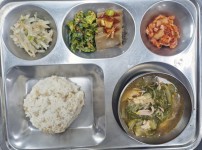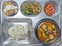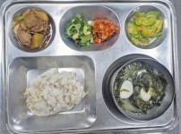 점심식단밥 : 쌀밥/잡곡밥국 : 흰떡미역국반찬 1 : 안동찜닭반찬 2 : 봄동된장무침반찬 3 : 애호박새우젓볶음반찬 4 :..
