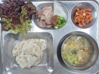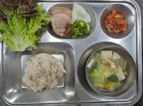 점심식단밥 : 쌀밥/잡곡밥국 : 북어채국반찬 1 : 수육반찬 2 : 상추쌈&쌈장반찬 3 : 아삭고추&쌈무반찬..