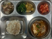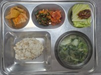 점심식단밥 : 쌀밥/잡곡밥국 : 들깨미역국반찬 1 : 제육불고기반찬 2 : 우엉채볶음반찬 3 : 동초나물무침반찬..