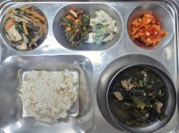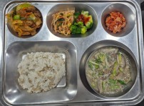 점심식단밥 : 쌀밥/잡곡밥국 : 쇠고기미역국반찬 1 : 버섯잡채반찬 2 : 브로콜리연근들깨무침반찬 3 : 쪽파고..
