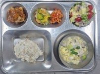 점심식단밥 : 쌀밥/잡곡밥국 : 순두부계란탕반찬 1 : 돈까스&데미소스반찬 2 : 과일샐러드반찬 3 : ..