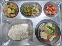 점심식단밥 : 쌀밥/잡곡밥국 : 다슬기국반찬 1 : 메추리알감자조림반찬 2 : 톳두부무침반찬 3 : 오이부추무침..