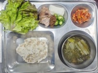 점심식단밥 : 쌀밥/잡곡밥국 : 얼갈이된장국반찬 1 : 수육반찬 2 : 상추쌈&쌈장반찬 3 : 아삭고추&..