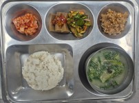 점심식단밥 : 오곡찹쌀밥국 : 쇠고기버섯국반찬 1 : 코다리두부조림반찬 2 : 삼색나물(콩나물ㆍ시금치ㆍ취나물)반찬 3 :..