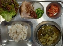 점심식단밥 : 쌀밥/잡곡밥국 : 청방배추된장국반찬 1 : 수육반찬 2 : 상추쌈&쌈장반찬 3 : 아삭고추&..