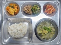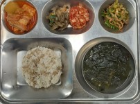 점심식단밥 : 쌀밥/잡곡밥국 : 미역국반찬 1 : 삼치무조림반찬 2 : 가지나물볶음반찬 3 : 미나리생채반찬 4 : 김치..