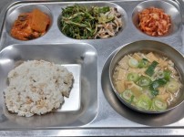 점심식단밥 : 쌀밥/잡곡밥국 : 추어탕반찬 1 : 옛날식두부조림반찬 2 : 연근아몬드볶음반찬 3 : 미나리생채반..