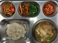 점심식단 밥 : 쌀밥/잡곡밥국 : 동태국반찬 1 : 미트볼양송이조림반찬 2 : 시금치나물무침반찬 3 :..