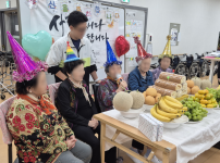 2025년 10월 10일(금) 동구노인복지센터 모습입니다.오늘은 10월 생신 잔치가 있었습니다. 오늘은 색다르게 롤케잌을..