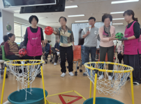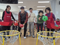 2025년 10월 29일(수) 동구노인복지센터 모습입니다.오늘은 신체활동 프로그램으로 농구놀이를 진행하였습니다. 농구골대..