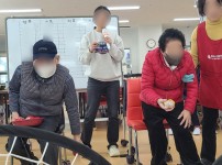 2026년 2월 24일(화) 동구노인복지센터 모습입니다.오늘은 어르신들과 함께 딱지 컬링을 해 보았습니다. 딱지를 밀어 목..