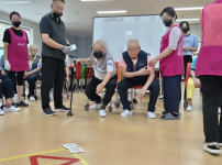 2025년 8월 7일(목) 동구노인복지센터 모습입니다,오늘은 신체프로그램으로 축구 놀이를 해보았습니다. 공을 똑 바로 차..