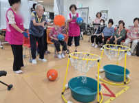 2025년 8월 29일(금) 동구노인복지센터 모습입니다.오늘은 신체활동 프로그램으로 농구놀이를 진행하였습니다. 공을 위쪽..
