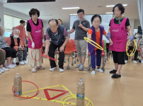 2025년 9월 2일(화) 동구노인복지센터 모습입니다.오늘은 신체활동 프로그램 고리 던지기를 하였습니다. 고리를 들고 거..