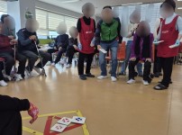 2026년 2월 24일(화) 동구노인복지센터 모습입니다.오늘은 어르신들과 함께 딱지 컬링을 해 보았습니다. 딱지를 밀어 목..